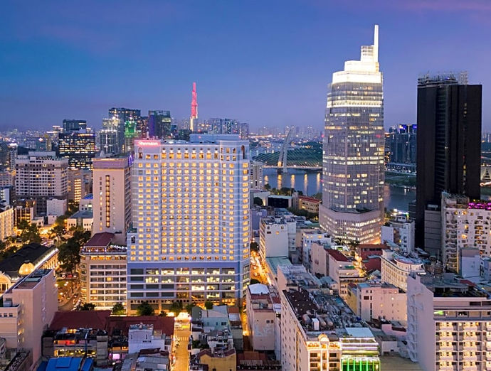 Strategically located in the heart of the city, just a stone?s throw from the beautiful Opera House, the Saigon River and the greatest mix of traditional and fine restaurants. The 374 deluxe rooms are furnished with the latest amenities such as bedside master touch control panel for lighting, drapes and air-conditioning, electronic safes, high speed broadband internet, minibar, tea and coffee making facilities, flat screen television sets, and marble bathrooms with separate bath and deluxe massage style shower. Eight restaurants and bars, 24 hour in-room dining, shopping arcade, outdoor lap pool, separate children?s pool, tennis court, table tennis, fitness centre, and the Aqua Day Spa are among the many guest services provided.